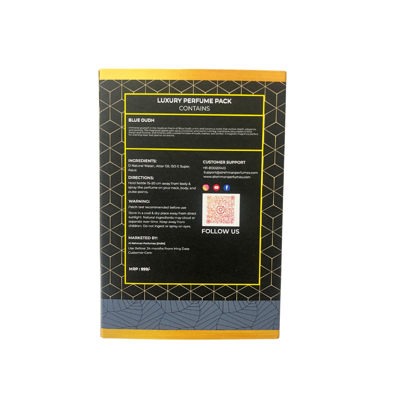 Immerse yourself in the mystical charm of Blue Oudh, a rich and luxurious scent that evokes depth, elegance, and serenity. The fragrance opens with spicy cinnamon and warm nutmeg, transitions into a heart of blue florals and incense, and finishes with a powerful base of oudh, leather, and amber. A majestic fragrance perfect for evening wear and special occasions.