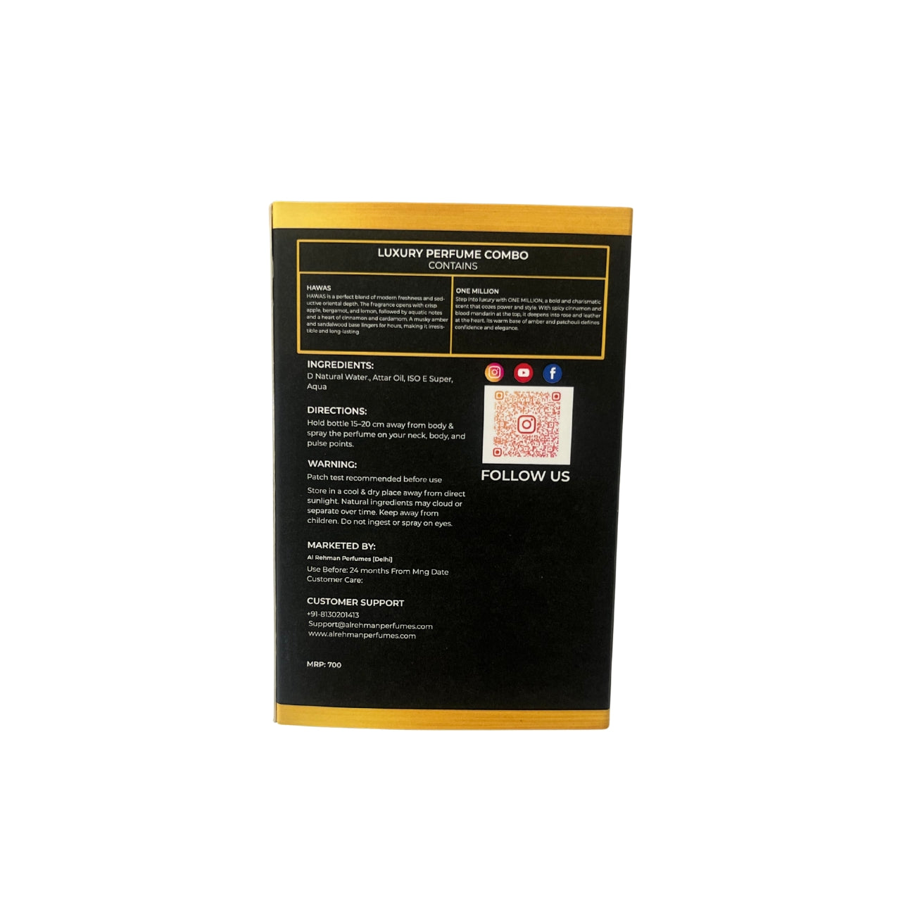 HAWAS is a perfect blend of modern freshness and seductive oriental depth. The fragrance opens with crisp apple, bergamot, and lemon, followed by aquatic notes and a heart of cinnamon and cardamom. A musky amber and sandalwood base lingers for hours, making it irresistible and long-lasting.
